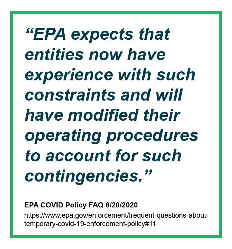 - Source: https://www.epa.gov/enforcement/frequent-questions-about-temporary-covid-19-enforcement-policy#11